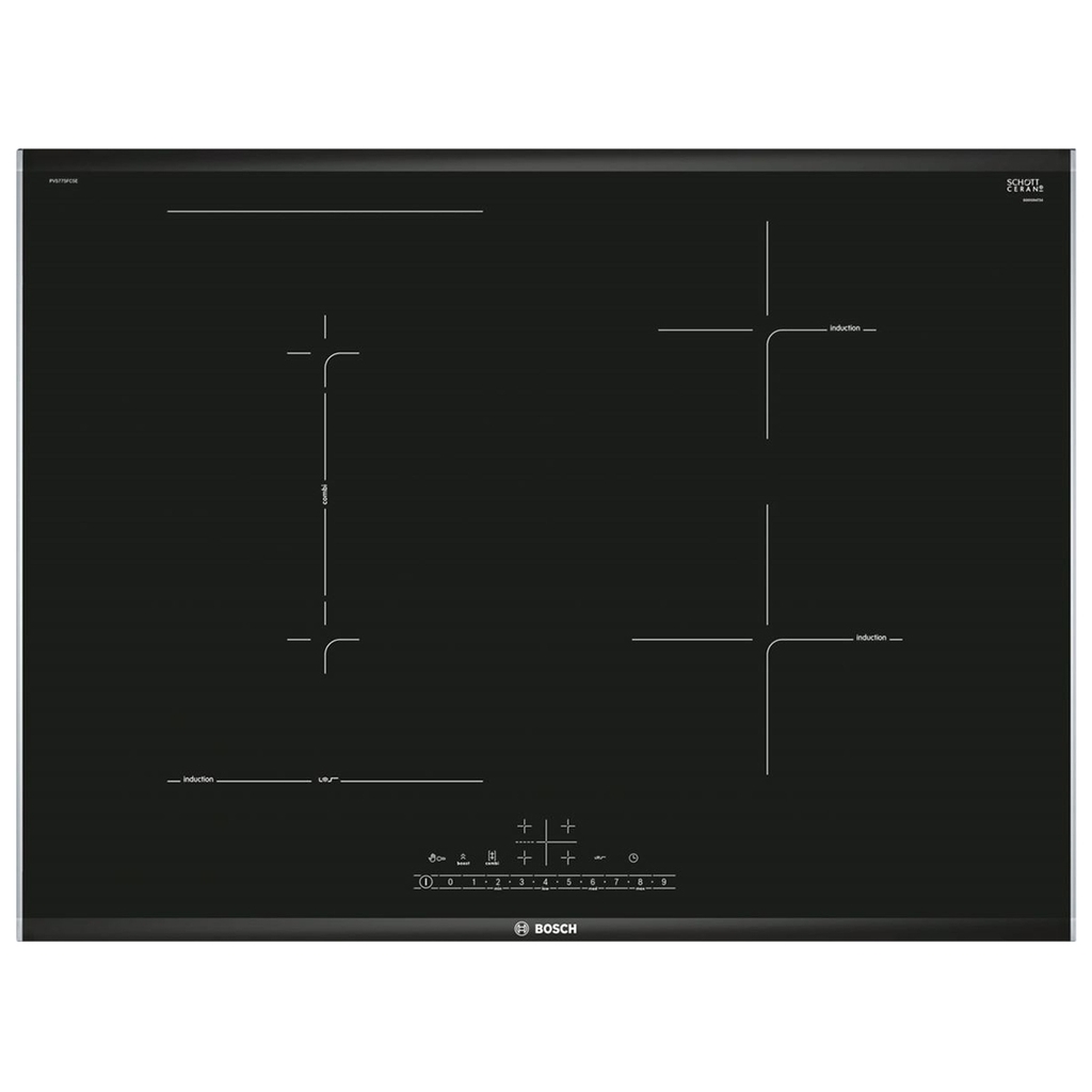 BẾP TỪ BOSCH DVS775FC5E nhập khẩu từ Tây Ban Nha, thiết kế bếp dạng CombiZone, nấu được nhiều món ăn cùng lúc với 4 vùng nấu. Mặt kính đen vát cạnh, chất liệu kính Schott Ceran đảm bảo độ bền và đẹp với thời gian, có khả năng chịu nhiệt, chịu lực chịu sốc nhiệt cao, dễ dàng vệ sinh.