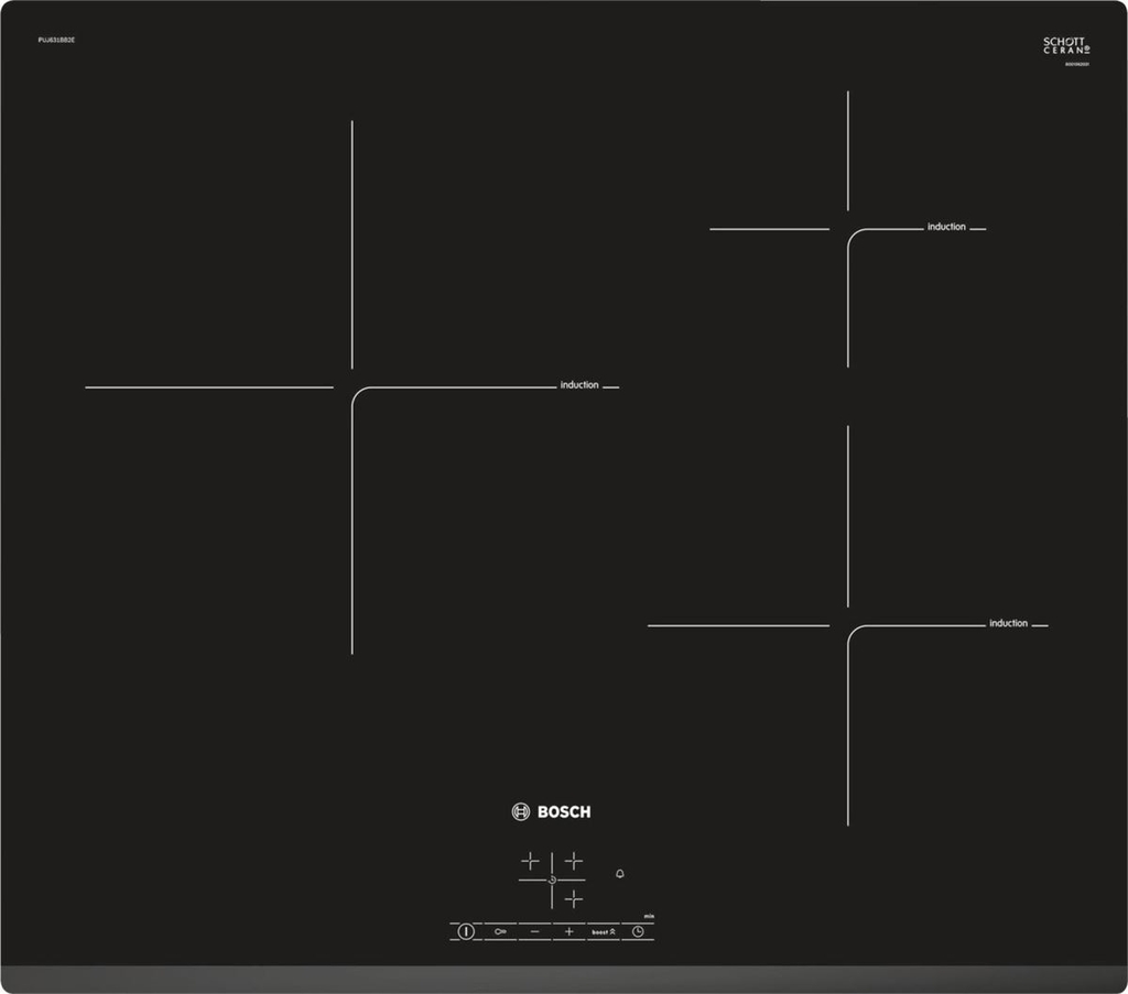 - Bếp từ Bosch PUJ631BB2E được thiết kế mặt kính Schott Ceran vát cạnh trước được sản xuất tại Đức, dế dàng vệ sinh, thiết kế sang trọng làm nổi bật căn bếp. Đây là một loại gốm kính cao cấp chuyên dụng cho điện bếp từ, được làm từ gốm sứ thủy tinh đặc biệt, rất cứng, bền, có khả năng chịu nhiệt, chịu lực, tản nhiệt tốt, chống va đập, chống trầy xước. Nó có khả năng chịu nhiệt lên đến 1000oC và sốc nhiệt tới 800oC.