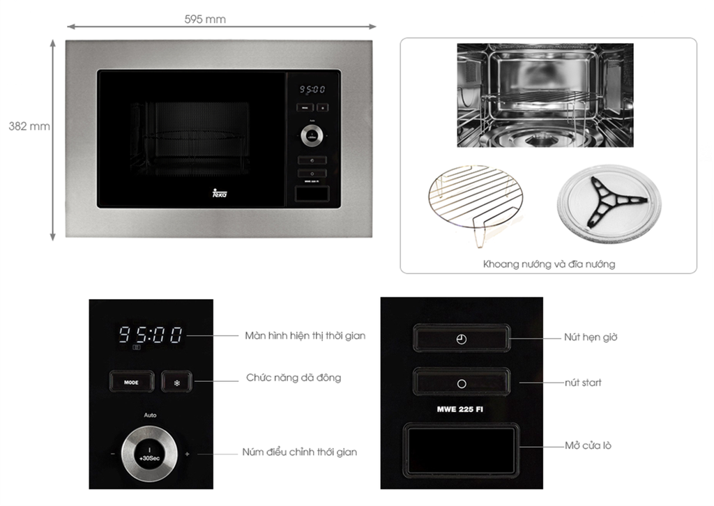 Gồm 5 mức công suất vi sóng, công suất lớn nhất lên tới 800 W và 8 chương trình nấu ăn tự động nấu ăn nhanh chóng .