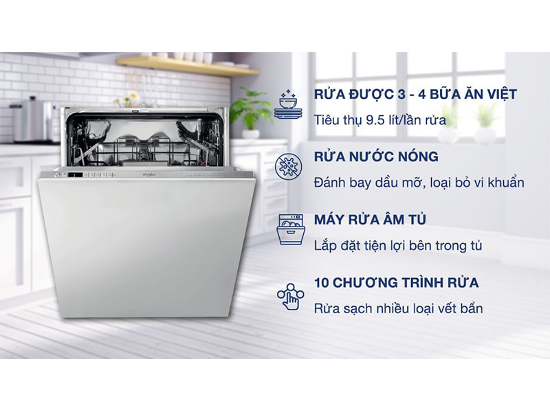Tiêu thụ chỉ 9,5 lít nước/lần rửa, sức chứa 14 bộ chén Châu Âu tương đương 3-4 bữa ăn Việt.