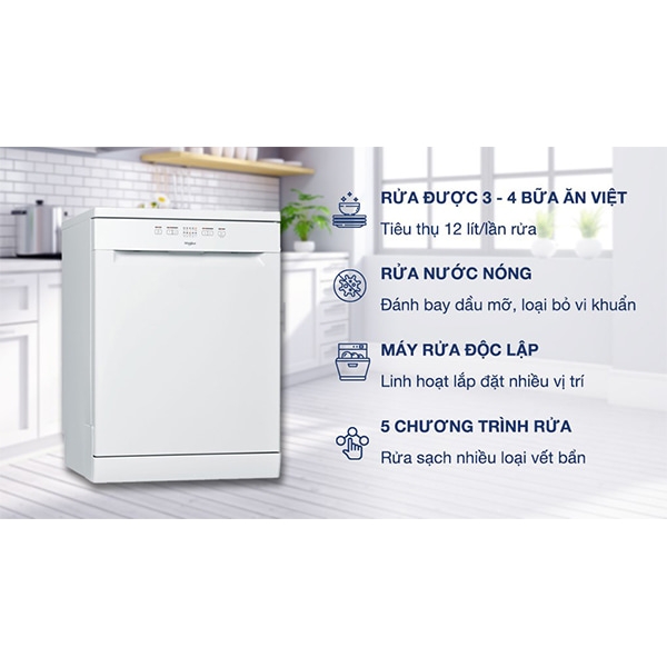 Máy rửa chén Whirlpool WFE 2B19 là mẫu thiết kế ra mắt vào năm 2022 của Whirlpool, máy được thiết kế độc lập cùng tông màu trắng thanh lich làm nổi bật không gian phòng bếp. Máy được tích hợp 5 chương trình rửa linh hoạt và công nghệ rửa nước nóng giúp loại bỏ mảng bám, vi khuẩn tối ưu.