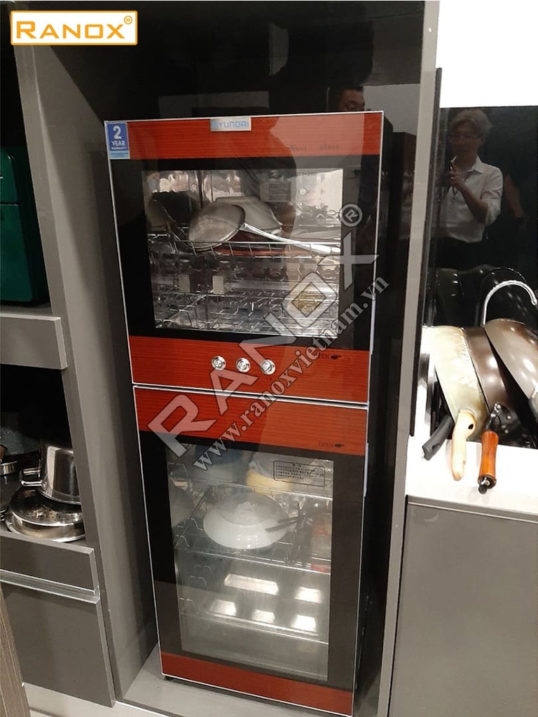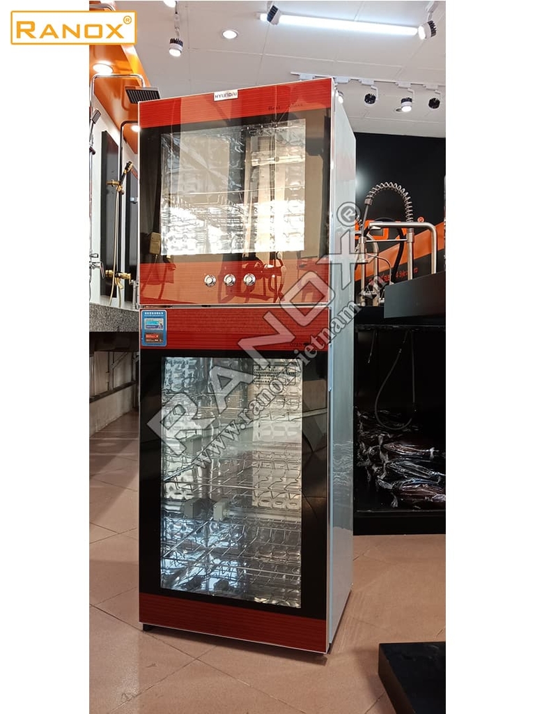 - Tủ sấy bát đứng 2 ngăn màu đỏ bảng điều khiển cơ, chế độ tự ngắt. Tủ sấy tự động, tự điều chỉnh thời gian phù hợp với lượng bát đĩa và ngắt sau khi sấy xong.