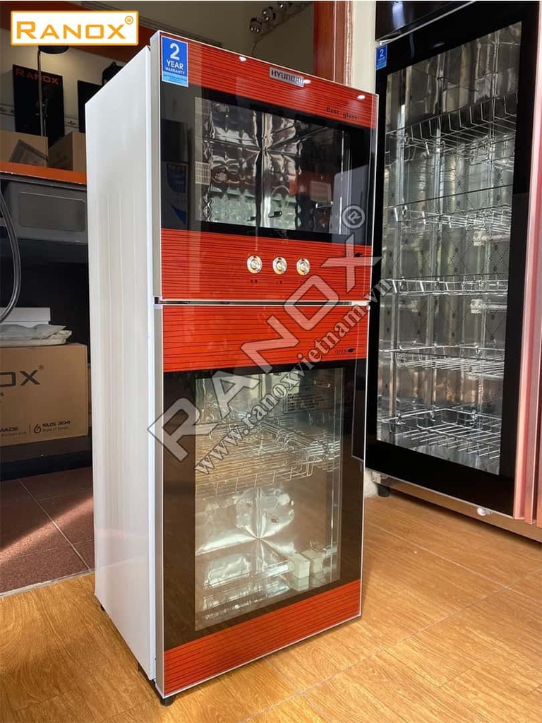 - Tủ sấy bát đứng 2 ngăn màu đỏ bảng điều khiển cơ, chế độ tự ngắt. Tủ sấy tự động, tự điều chỉnh thời gian phù hợp với lượng bát đĩa và ngắt sau khi sấy xong.