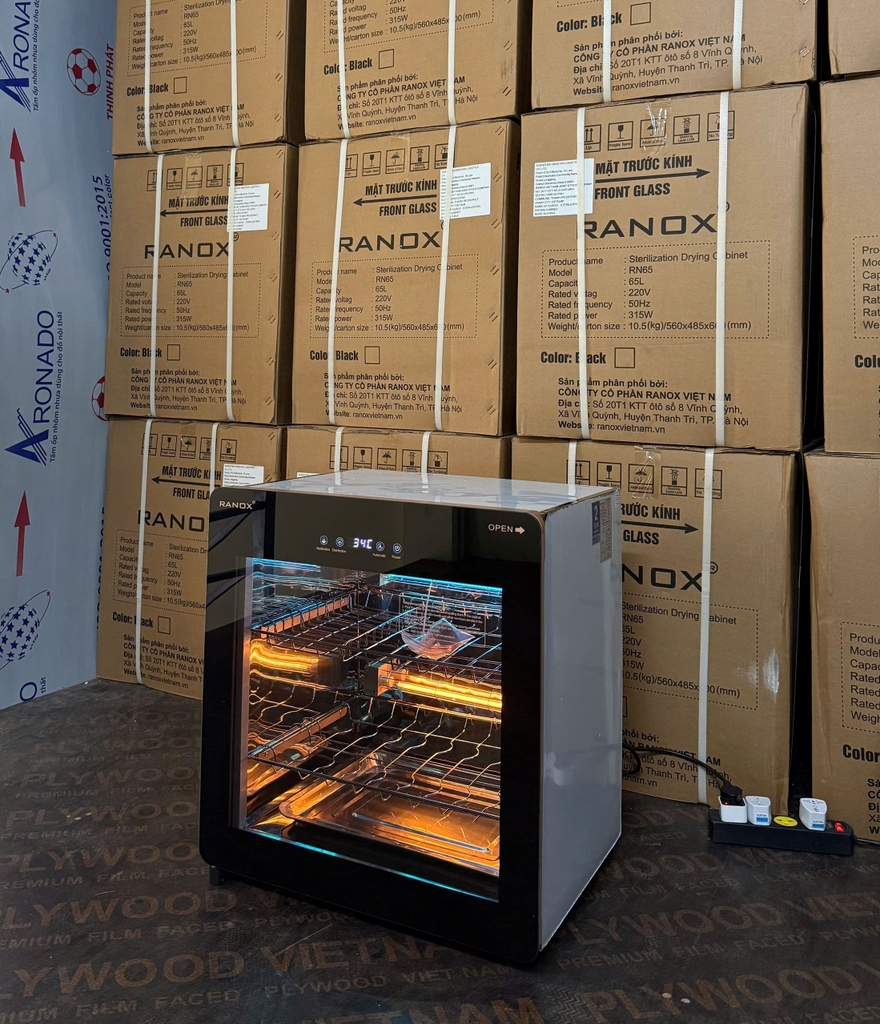 Tủ sấy tiệt trùng bát đĩa RN65 thương hiệu Ranox, ứng dụng công nghệ tiệt trùng UV + Ozone tiến tiến giúp sấy khô nhanh, diệt 99,9% vi khuẩn bảo vệ sức khỏe toàn diện cho cả nhà.
