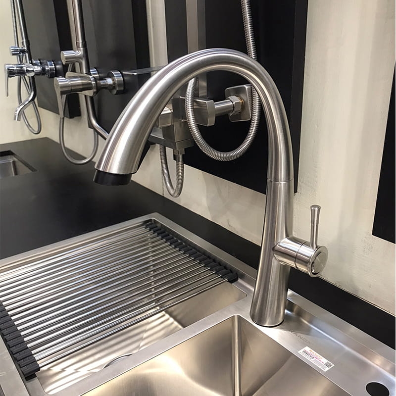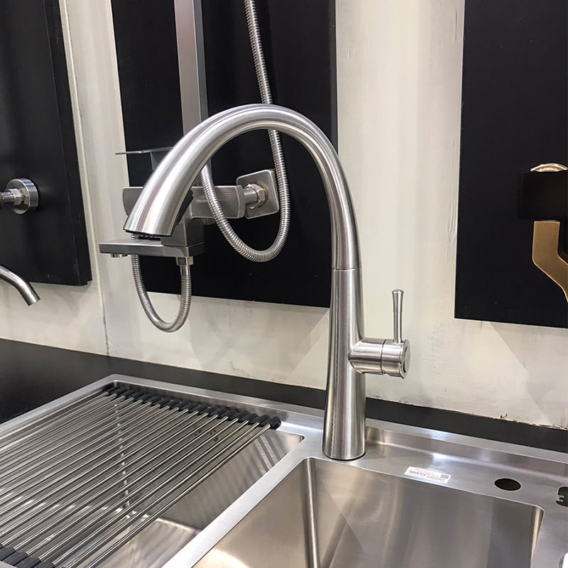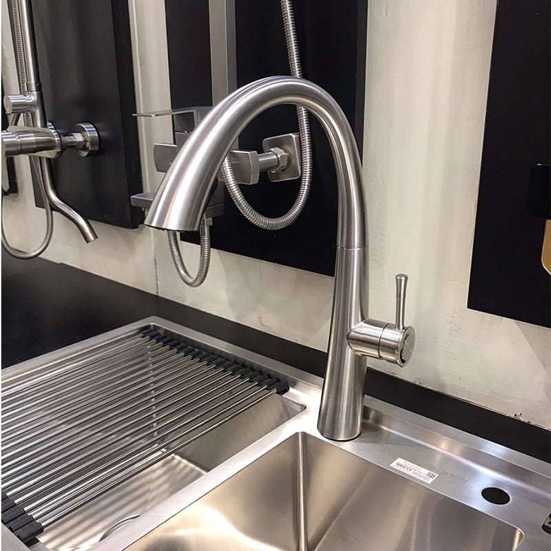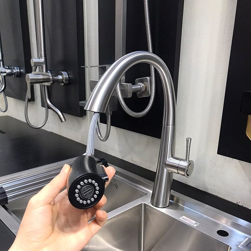 - Thân vòi có thể xoay 360 độ, kết hợp vòi rút dây dễ dàng di chuyển tới các vị trí trong chậu để vệ sinh.
